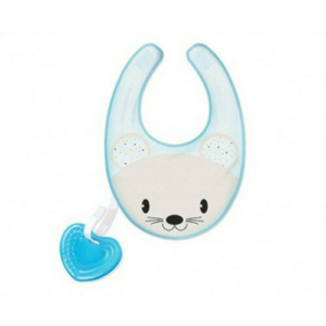 CHICCO FRESH BIB CELESTE 2 m+ bavaglino e massaggiagengive 2in1