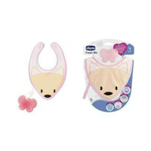CHICCO FRESH BIB ROSA 4m+. 3in1 massaggiagengive morbido,fresco ,e bavaglino